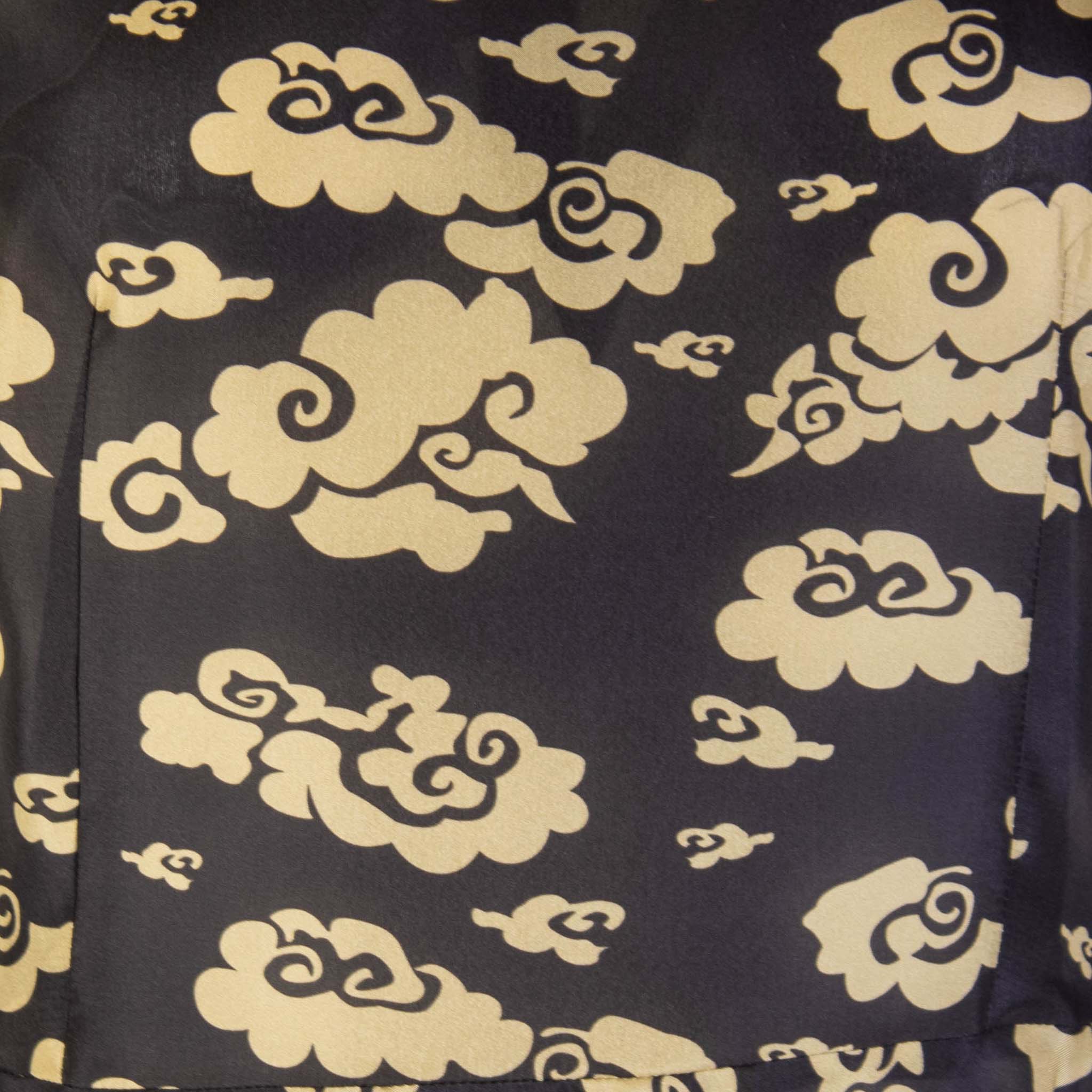 Lardini Black and Gold Printed Long Silk Dress